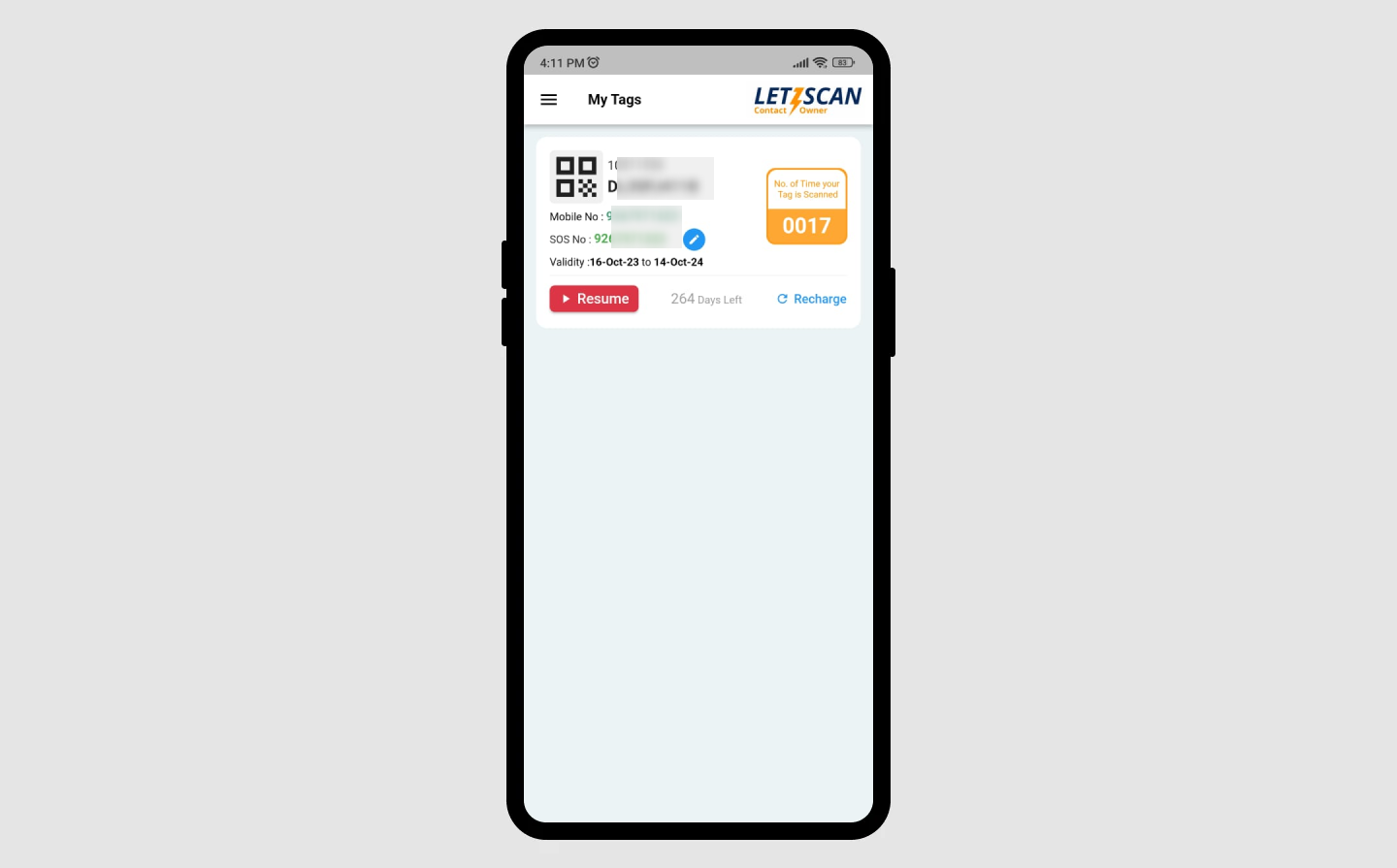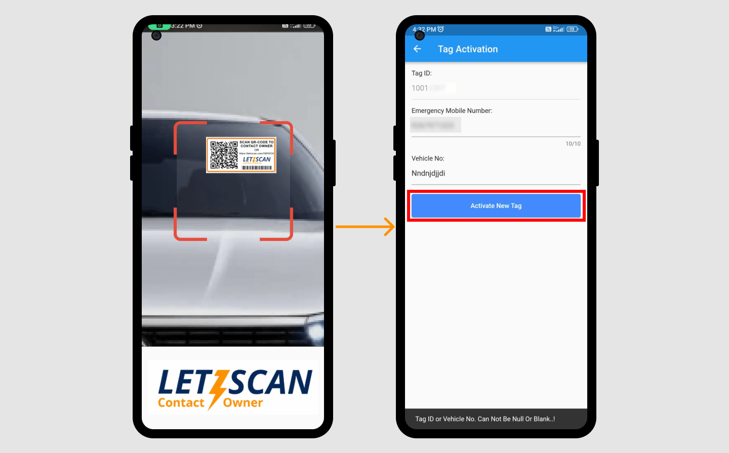 - Once the app successfully scans the Smart Tag, it will automatically redirect you to the Tag Activation Page.