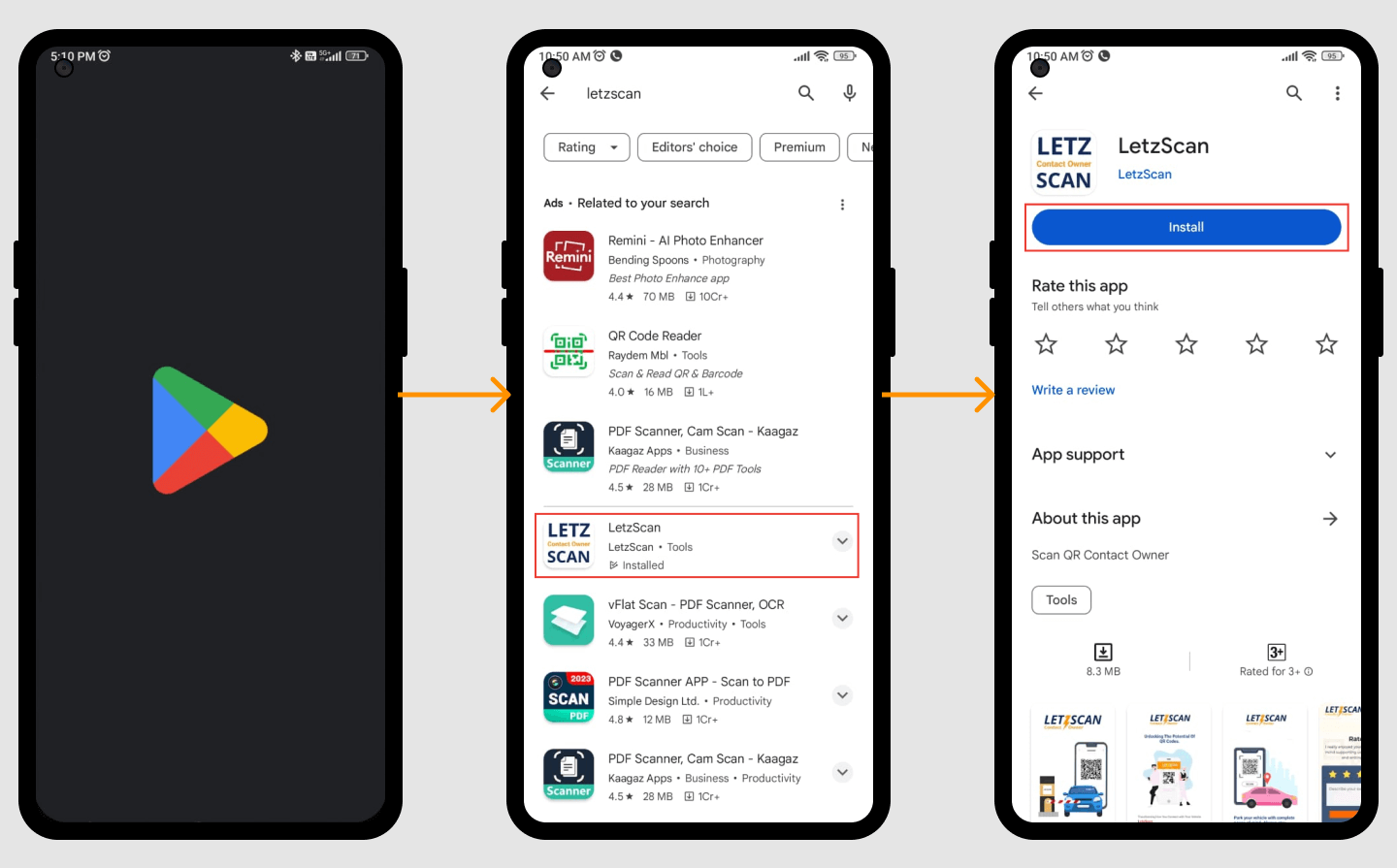 - Once the installation is complete, locate the Letzscan app icon on your home screen or app drawer.